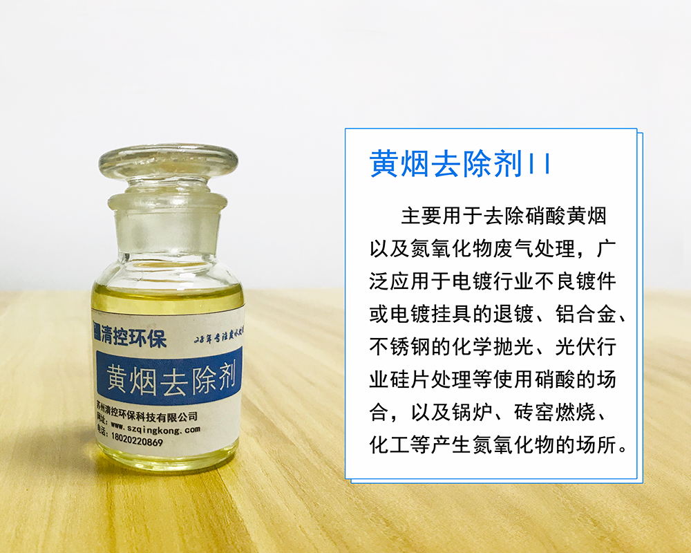 黄烟去除剂,主要应用于电镀行业不良镀件或电镀挂具的退镀、铝合金、不锈钢的化学抛光等使用硝酸,以及硝酸生产的场合,也可用于锅炉燃烧、金属冶炼等场所。